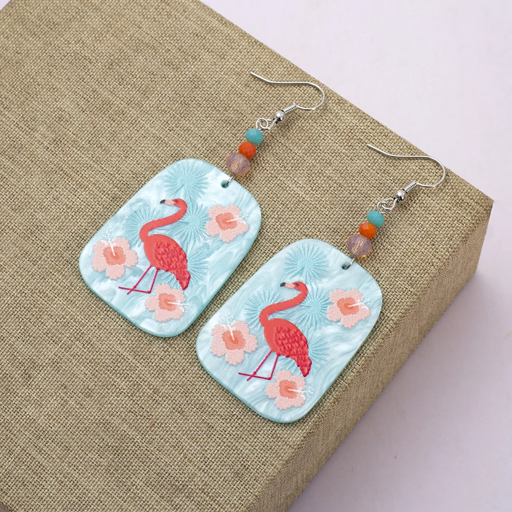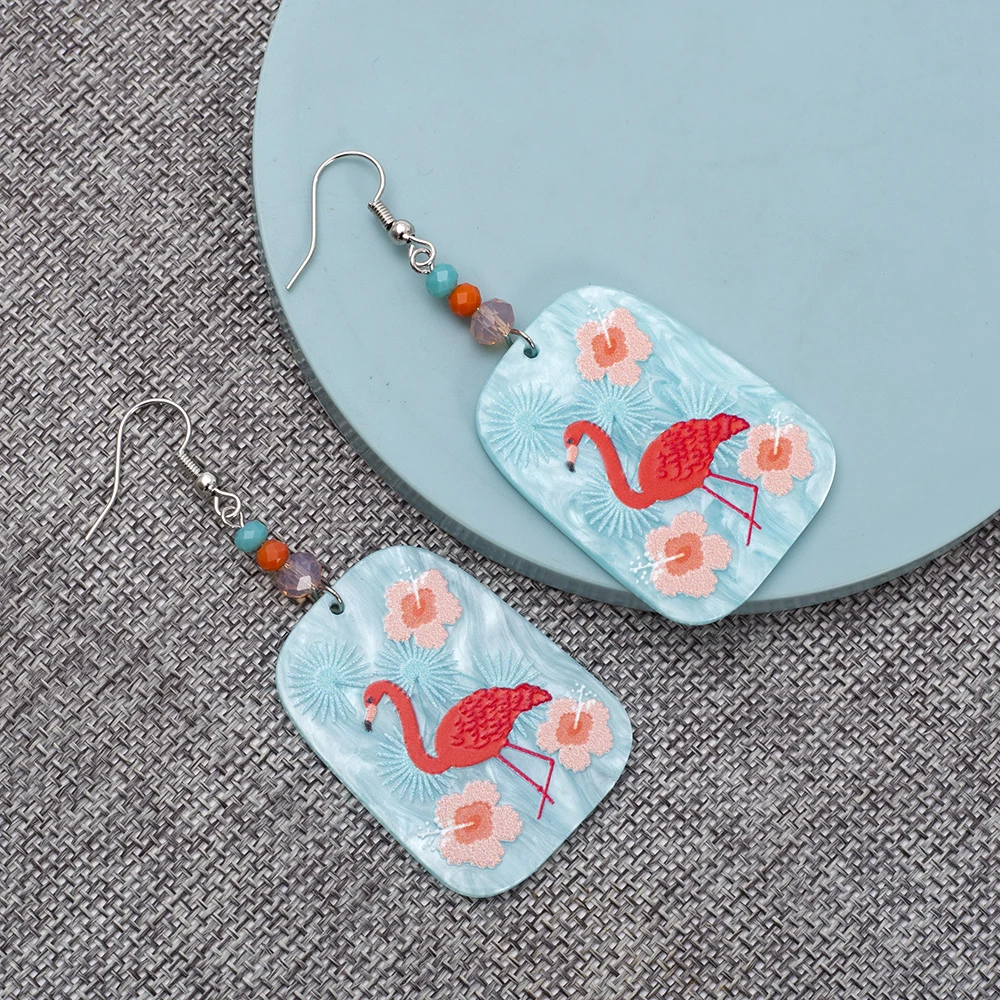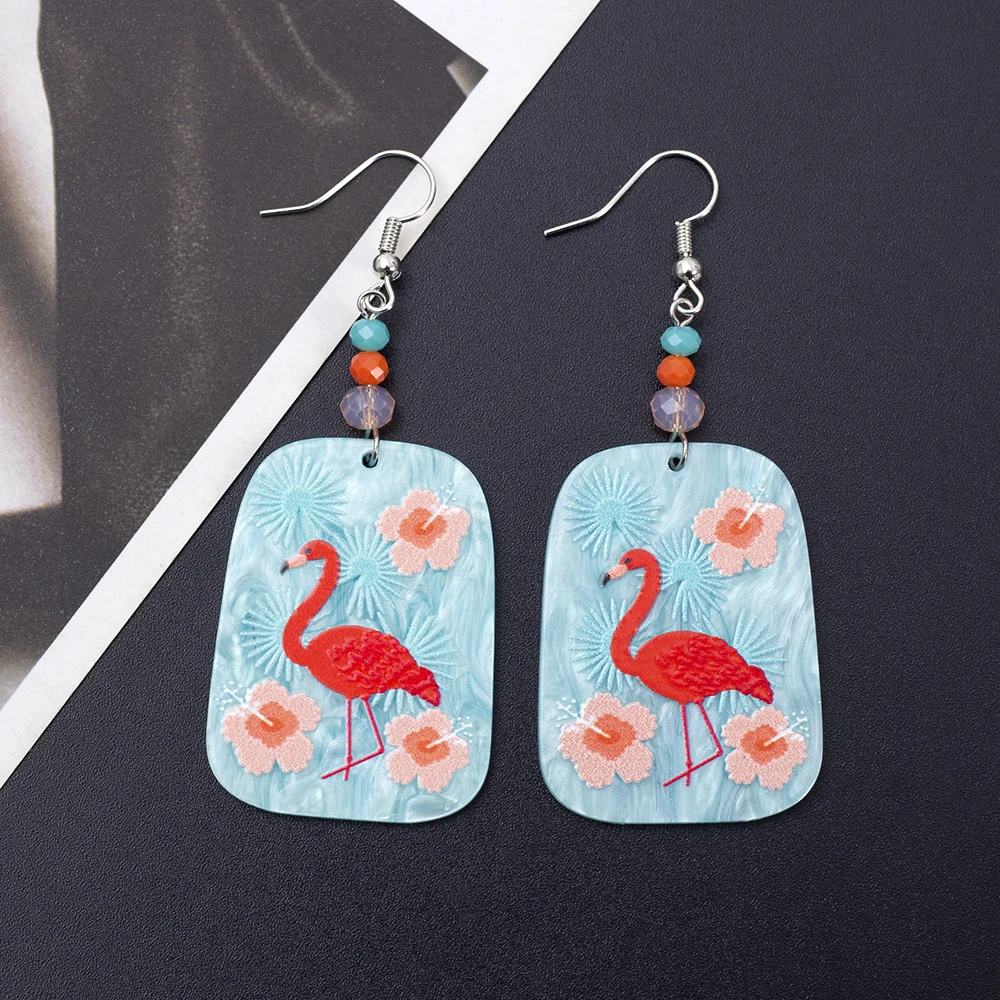 Korean Fashion Acrylic Flamingo Earrings For Women Temperament Color Matching Pink Flower Girls Jewelry Summer Vacation Style